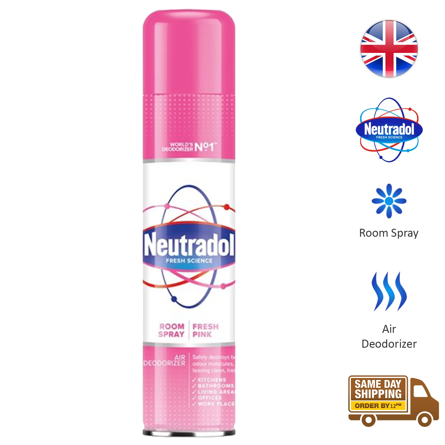 Instant Odour Elimination: Neutradol Room Spray acts instantly to eliminate unwanted smells, providing a swift solution to create a fresh and clean atmosphere.