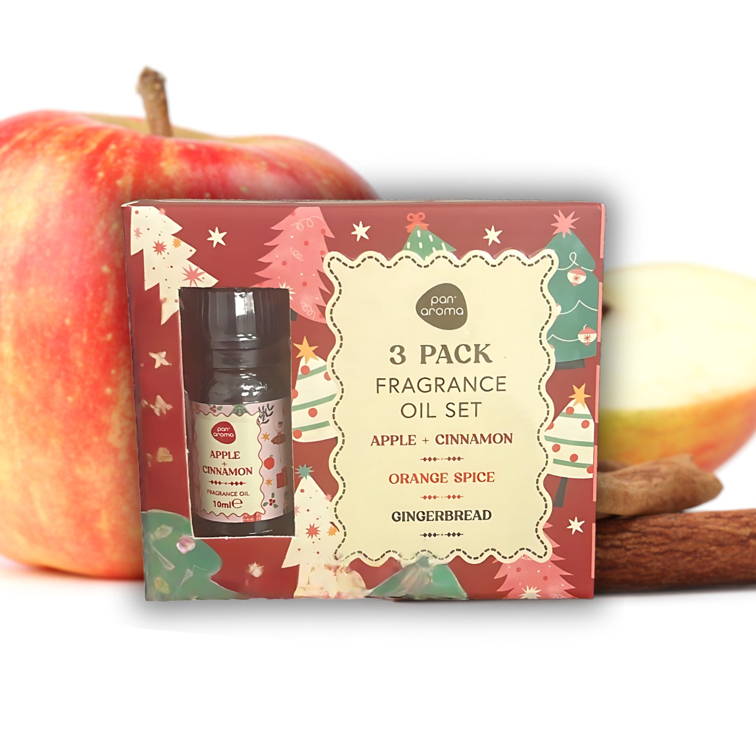 Transform your home into a winter wonderland with the Pan Aroma 3-Pack Fragrance Oil Set. This beautifully curated set features three irresistible scents Orange Spice, Gingerbread, and Apple & Cinnamon—to bring the festive spirit into your space. Perfect for diffusers, oil burners, or creating a cozy ambiance, these oils are ideal for enhancing your home during the holiday season.