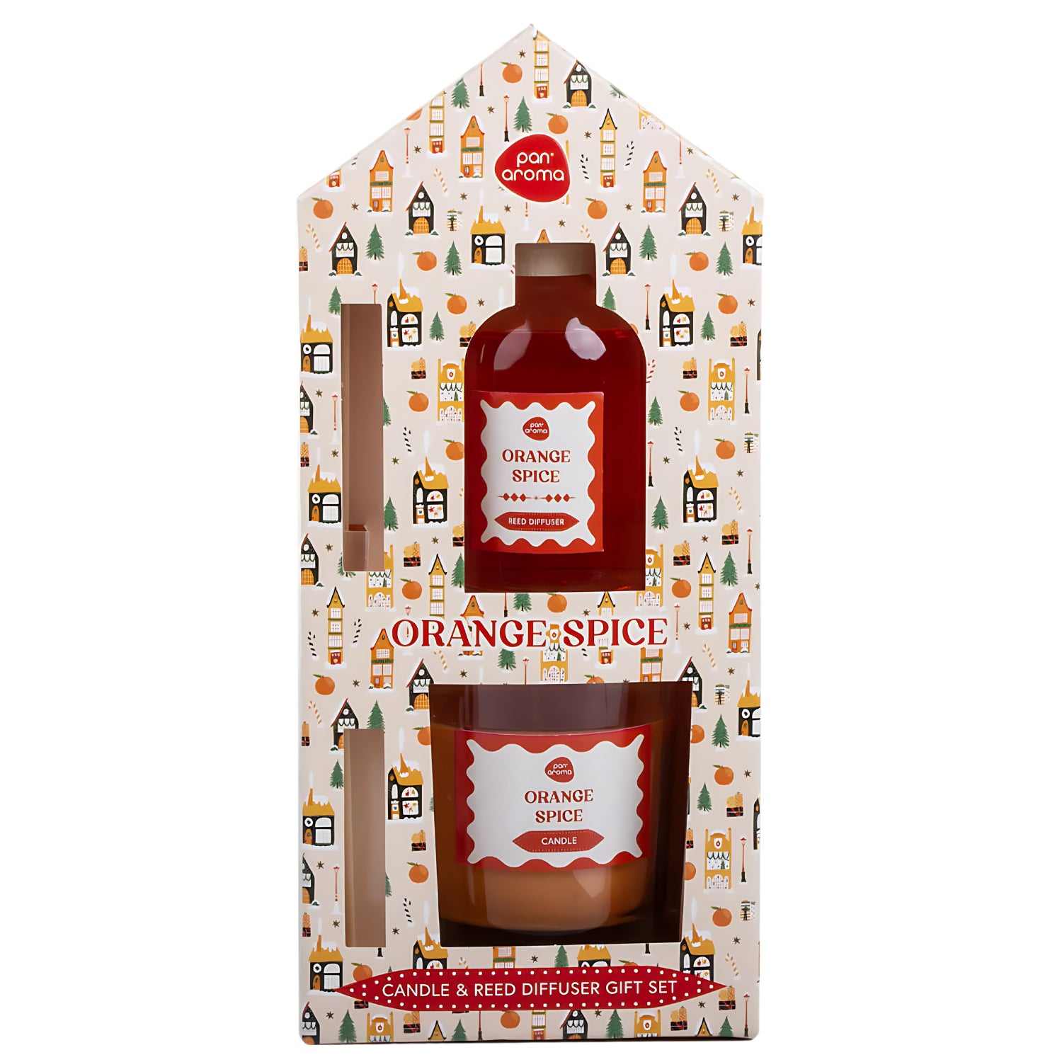 Pan Aroma Orange Spice Red Diffuser Oil & Candle Wax Special Occasions Gift Set