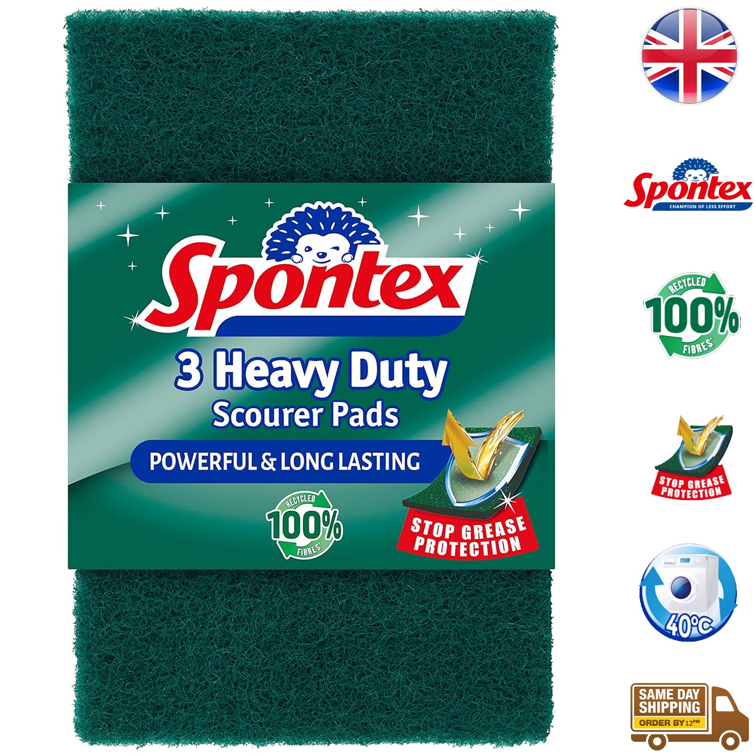 Spontex Heavy Duty Scourer Pads, the ultimate solution for powerful and efficient cleaning on tough jobs. Crafted with special anti-grease technology, these scourer pads are designed to stay cleaner for longer, ensuring durability and effectiveness in heavy-duty cleaning tasks.