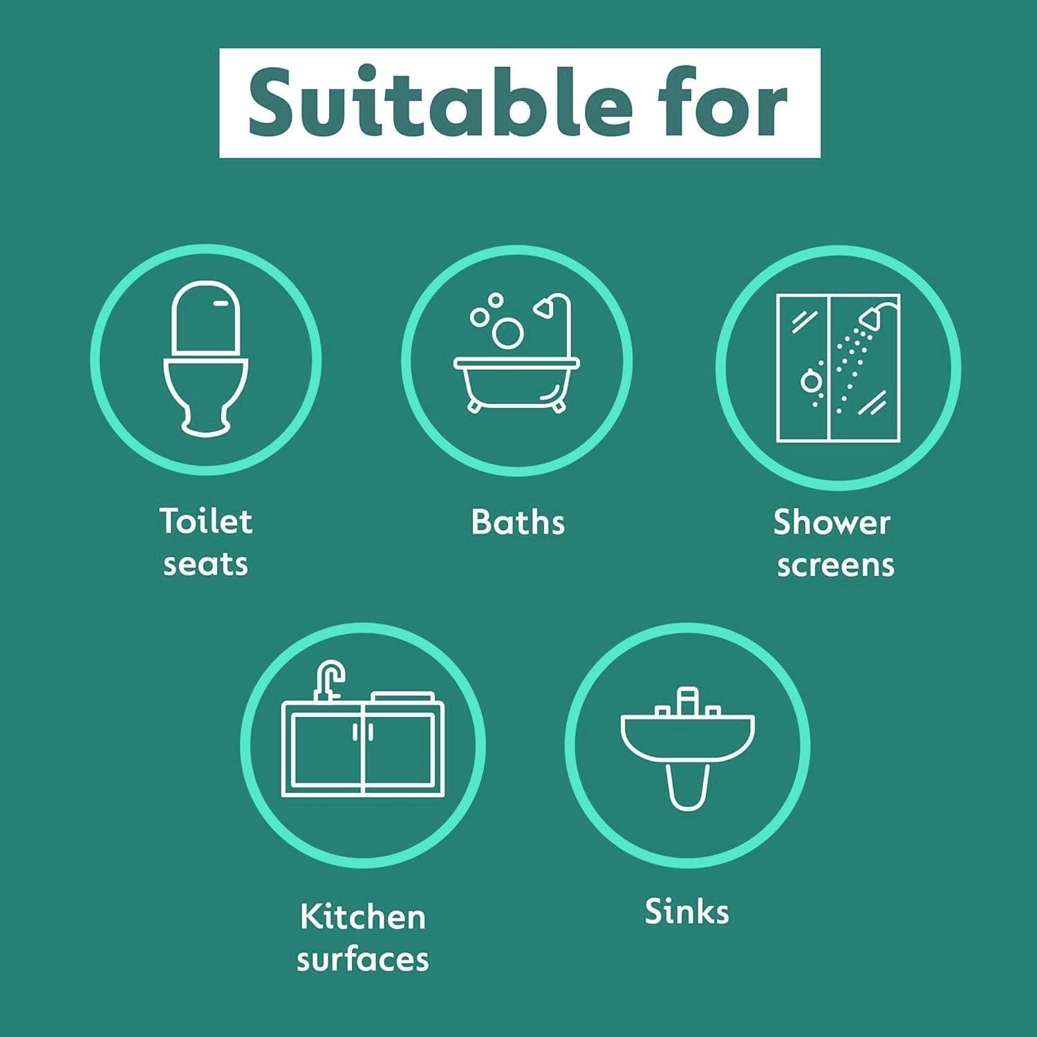 For Multiple Surfaces: Use in bathrooms, kitchens, toilets, and drains.