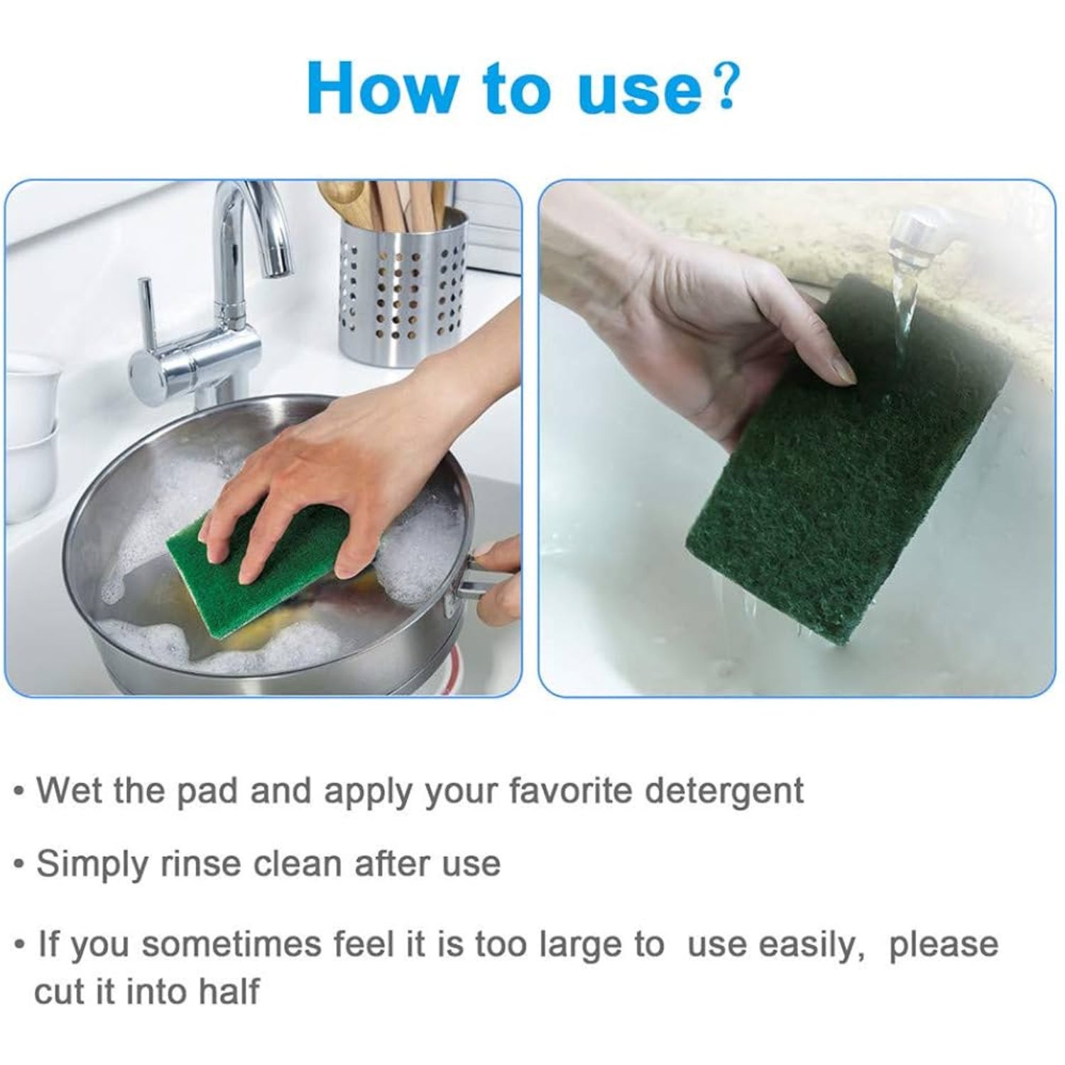 Super Bright Green Scouring Pads Heavy Duty Scourer Scrub Cleaning 10Pk