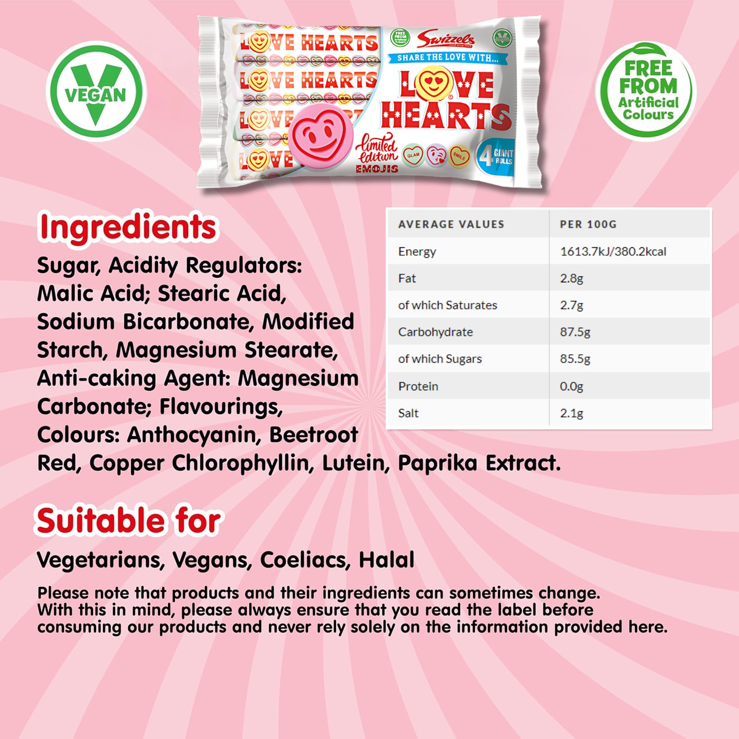 Iconic Love Hearts with fun emoji messages, bringing a modern twist to a classic candy.
