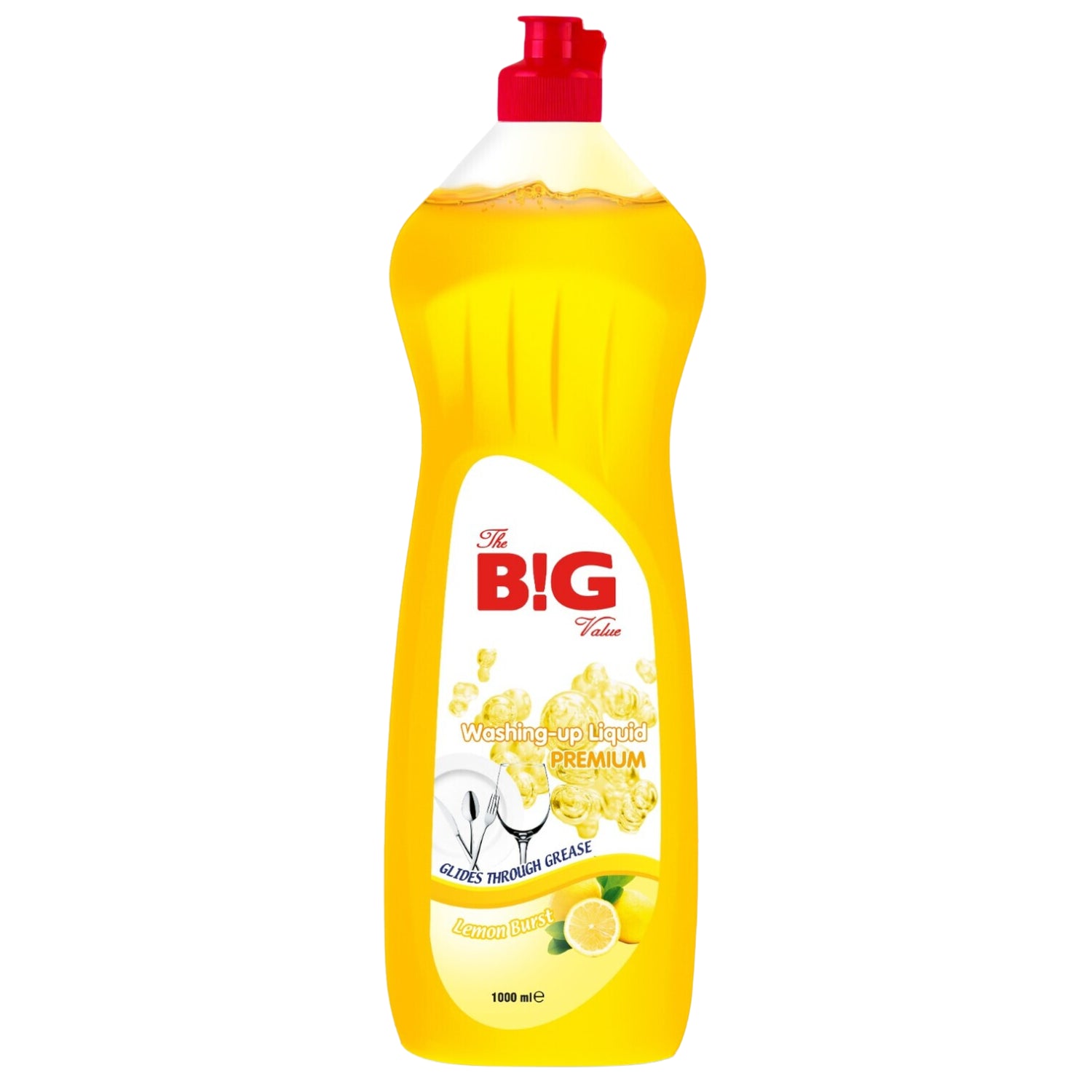 The Big Value Lemon Burst Premium Washing Up 1L Liquid Hand Washing-Dishes Pots