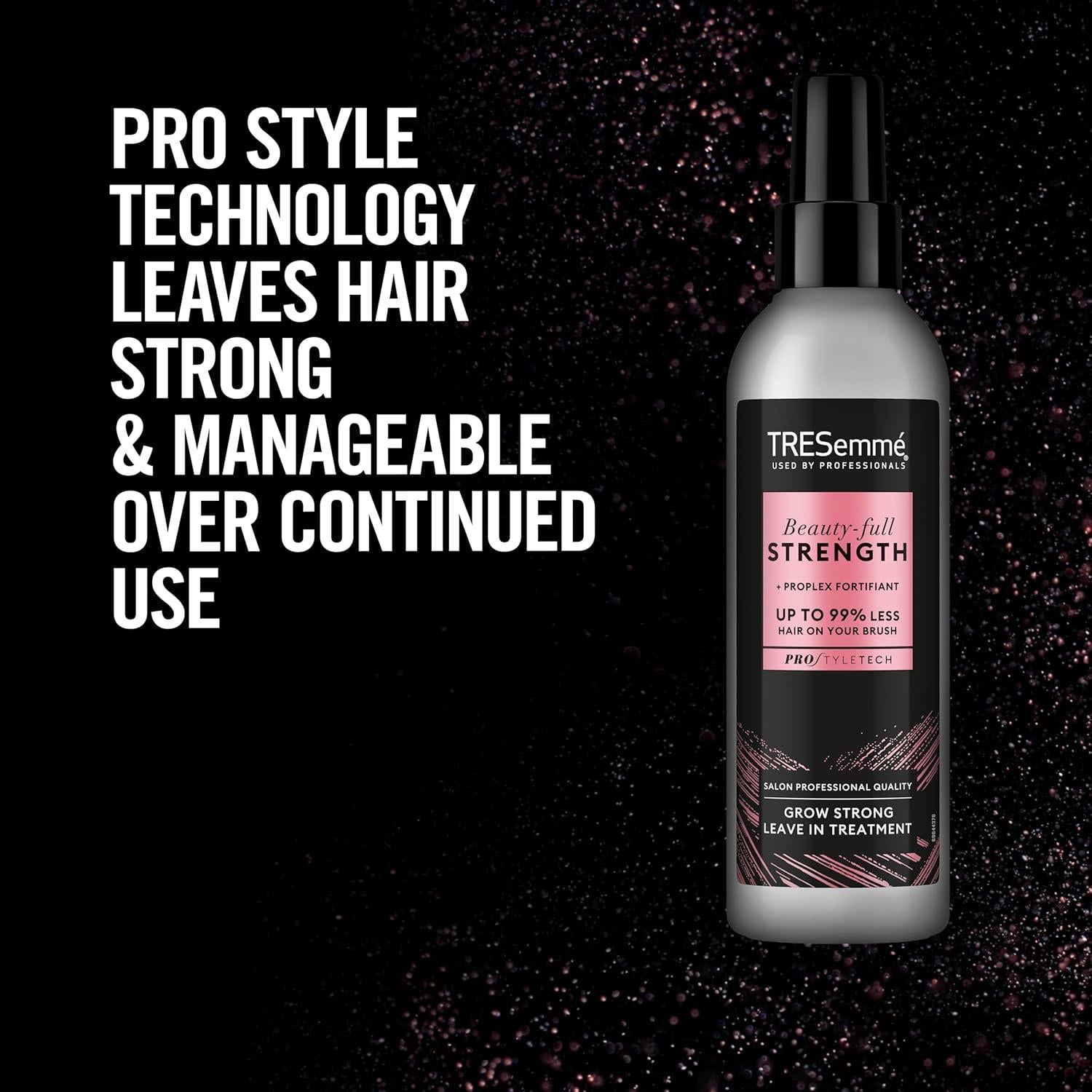 Achieve stronger, healthier-looking hair with TRESemmé Beauty-Full Strength ProPlex Fortifiant Leave-In Treatment. Designed for damaged, weak, or brittle hair, this professional-quality formula helps reinforce hair strength from root to tip, reducing breakage and hair fall. Enriched with ProPlex Fortifiant Technology, it penetrates deep into the hair fiber, rebuilding and strengthening hair bonds for up to 99% less hair on your brush.