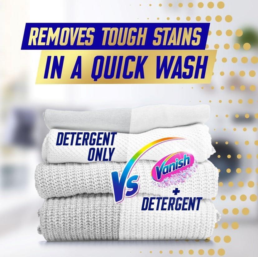 Revive the brilliance of your whites with Vanish Oxi Action Crystal White Powder. Formulated with powerful Oxi Action technology, it lifts even the toughest stains and enhances the natural whiteness of your fabrics—without damaging fibers. Whether used in every wash or for soaking, it’s your perfect laundry ally for radiant whites.