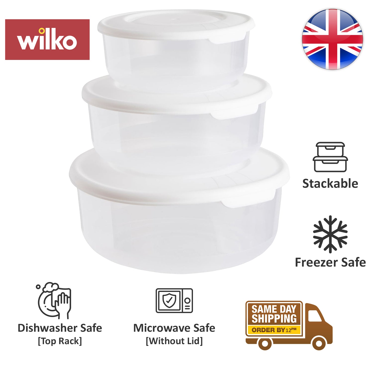 Wilko Round Food Storage Container Clear Plastic Picnic Lunch Box With Lid 3Pk