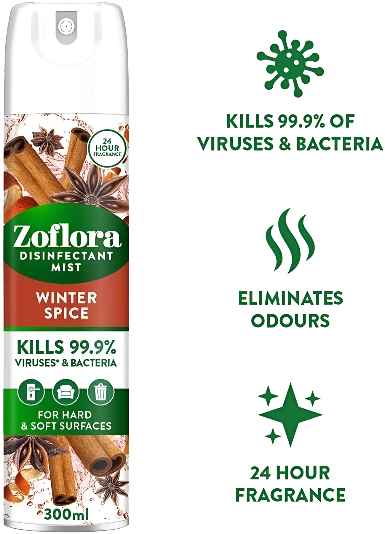 Elevate your cleaning experience with the Zoflora 3 in 1 Disinfectant Mist Spray in Winter Spice. Order now to create a hygienic and inviting home atmosphere!
